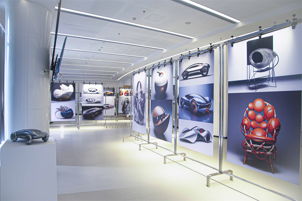 本单元是数智艺术走向产业化的场域,当数智技术不再是生活美学的“旁观者”,而是深度融入生活肌理、制造业肌理,逐步形成数智先进生产力。集结了重磅创作力量:许燎源先生带领吉利艺术设计学院师生深耕实践,付黎明、罗挽澜、杨鸽、颜沁、周栓林、黄心杨等青年艺术家亦带来先锋表达。这些作品既有扎根生活的实物创作——承载工艺巧思的器物、可穿戴的艺术首饰与丝巾、融入空间质感的家居及艺术沙发,将制造业的严谨转化为可触摸的日常诗意;亦有指向未来的概念探索- 诠释流线与功能之美的概念汽车、突破形态边界的概念时装与家居、以及探索创新形态的概念包装.....