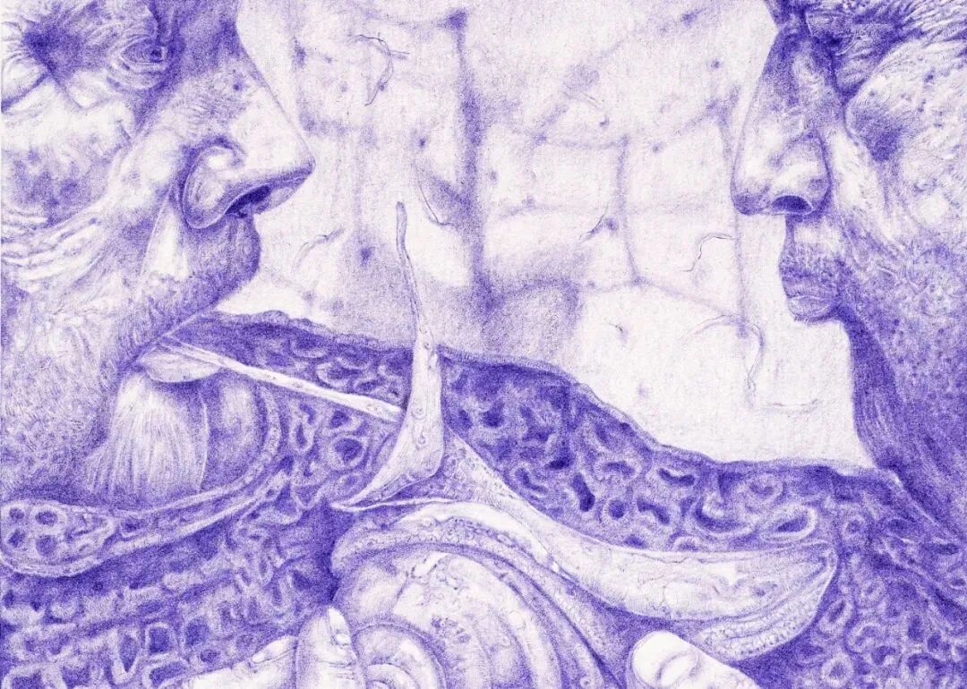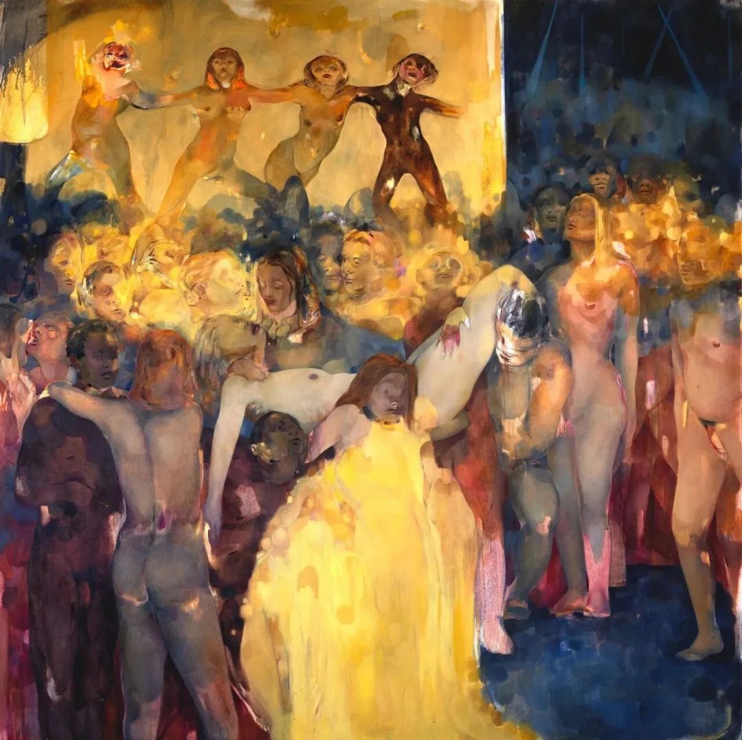 维克多·曼(Victor Man)的绘画难以被简单归类,它们展现出对文学、艺术与诗歌多元而非线性的指涉,将人类经验的核心要素转化为色彩与形式的预见性呈现。这些作品以生死循环为内核,既描绘神秘难解的主题,亦包含艺术家以自我形象为锚点的自画像——那既是稳定世界的力量,亦是直面世间混沌的诘问式见证。