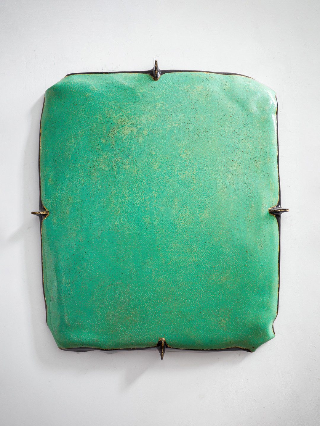 在《集聚之太阳行星》系列中,同心线与球体唤起我们对宇宙的想象,却远非单纯的视觉图案;唯有长时间凝视,其美学智慧才会逐渐显现。这些作品的物质性拒绝了二维图像的扁平与束缚:由生漆、瓦灰、苎麻构成的颗粒与肌理在未抛光状态中被局部保留,与周围的平滑漆面形成鲜明对比。作品四周隆起的边缘将画面向外延展;它们时而间断,时而向内挤压,如节奏般成为画面的一部分。