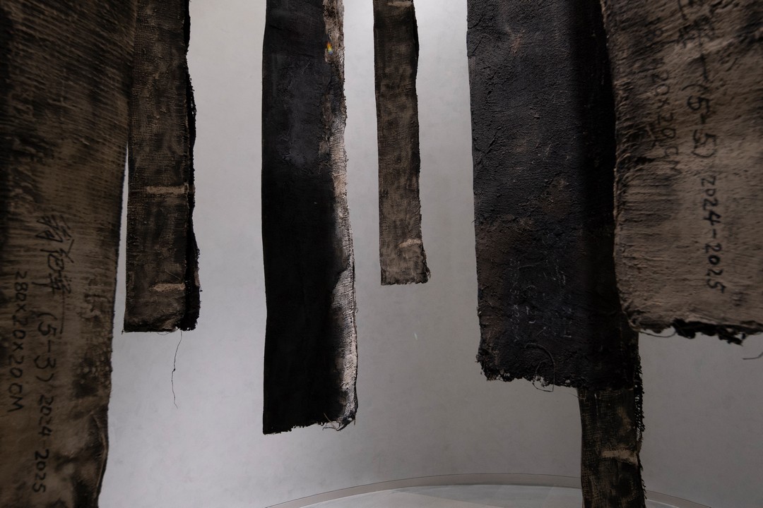 艺术家翁纪军表示:“近年来,我尝试用作品体现时间的线性关联,即用作品的图案、肌理、质感等视觉语言体系时间累积的印记;同时我想呈现漆最原始的生命力:从乳白、红棕到漆黑的万千变化,以及材料自身的视觉张力——苎麻的肌理、瓦灰的颗粒——这些在传统中被埋藏、被忽视的部分。回归漆的本质,在物质与时间的维度中,探寻人类与宇宙的隐秘联结。”