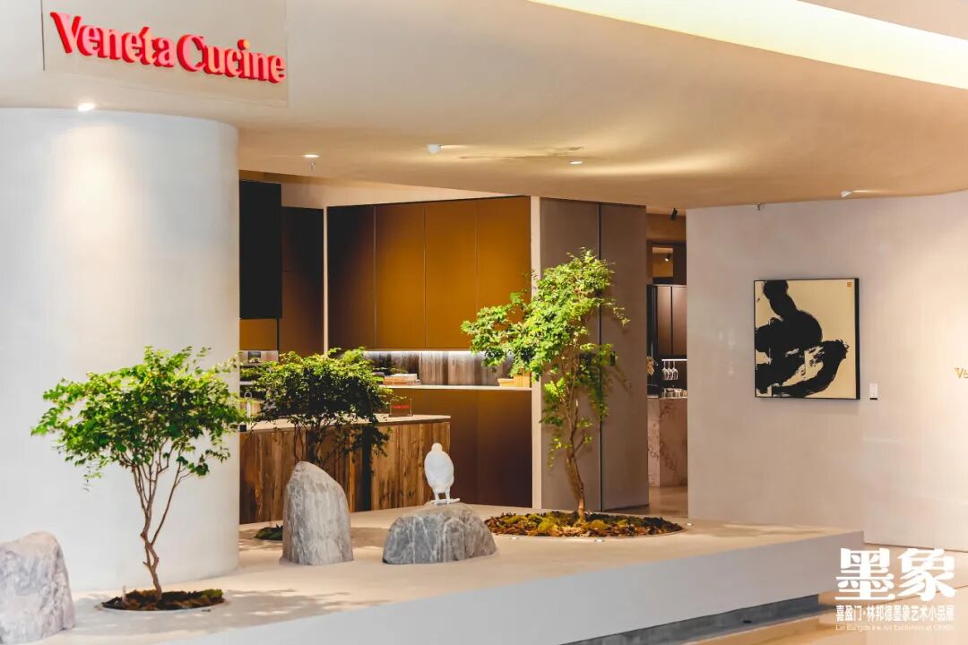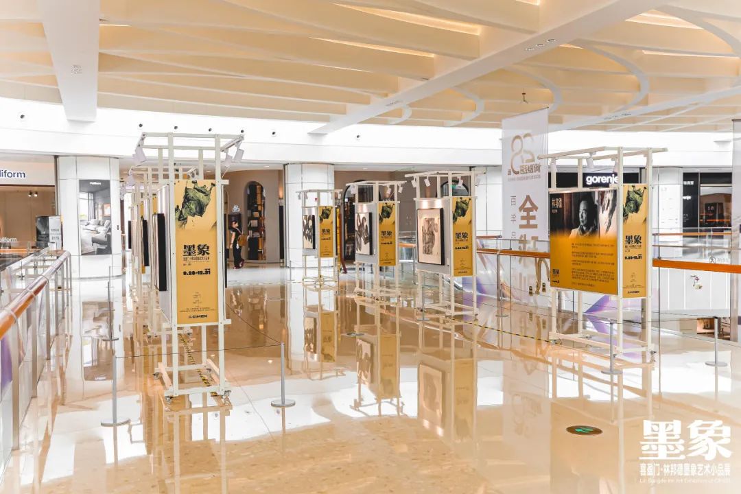本次展览特别设计了双重观赏空间:除了在商场公区的作品展示外,还在国际馆二楼的威乃达和卡卡罗展厅打造了沉浸式艺术体验空间。这种布局让观众能够在不同环境中感受墨象艺术的多元魅力,体会艺术作品与生活空间的完美融合。