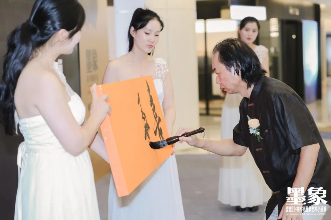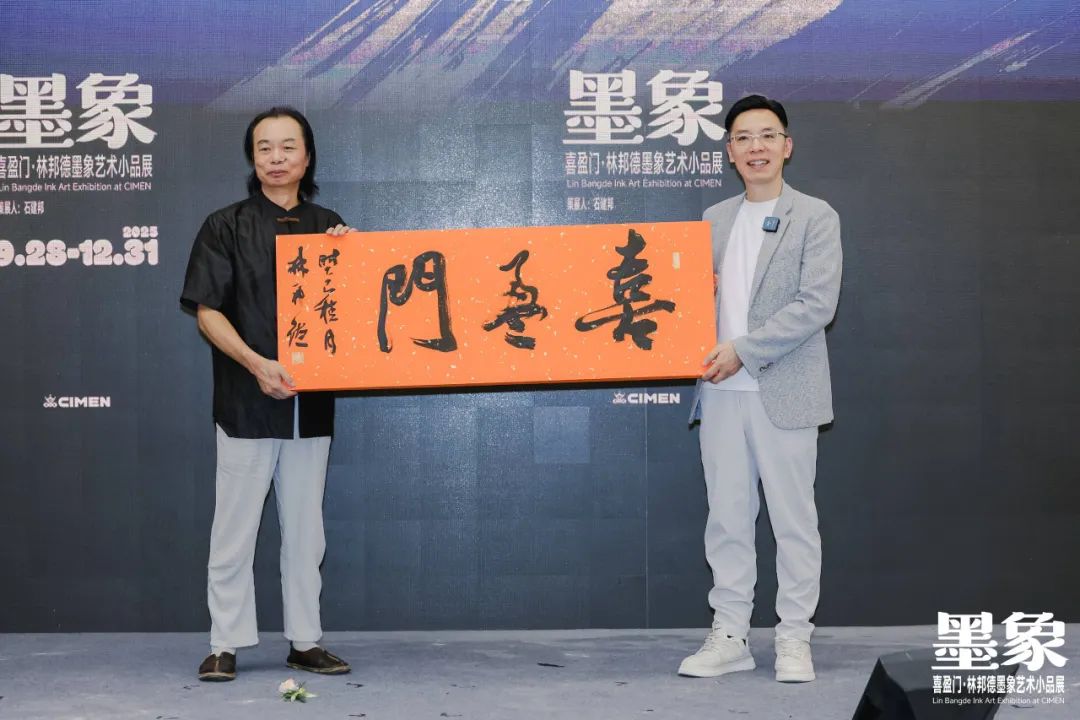 开幕式的高潮环节,林邦德先生现场挥毫,进行主题创作,并将作品捐赠给喜盈门集团收藏。这一举动,不仅体现了艺术家的博大胸怀,也象征着艺术与商业空间深度合作的崭新开端。