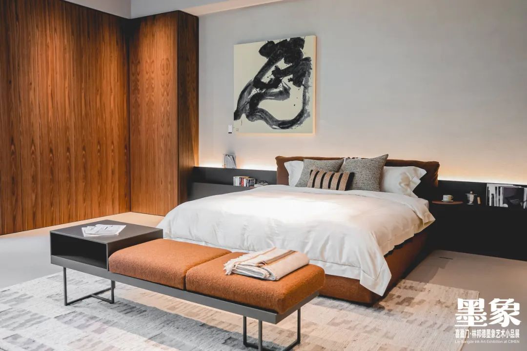 从空间设计的实践出发,设计师侯胤杰先生分享了其独特见解:“林邦德老师的墨象作品具有极强的视觉张力和情绪感染力。它们既能成为空间中的视觉焦点,提升整体格调,其抽象的语言又能与各种风格对话,为现代居住环境注入空灵、深邃的文化气息,实现艺术与生活的无缝连接。”