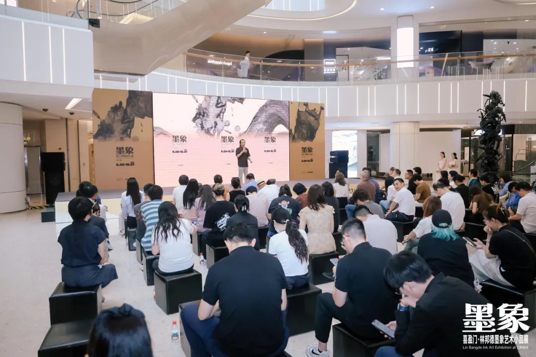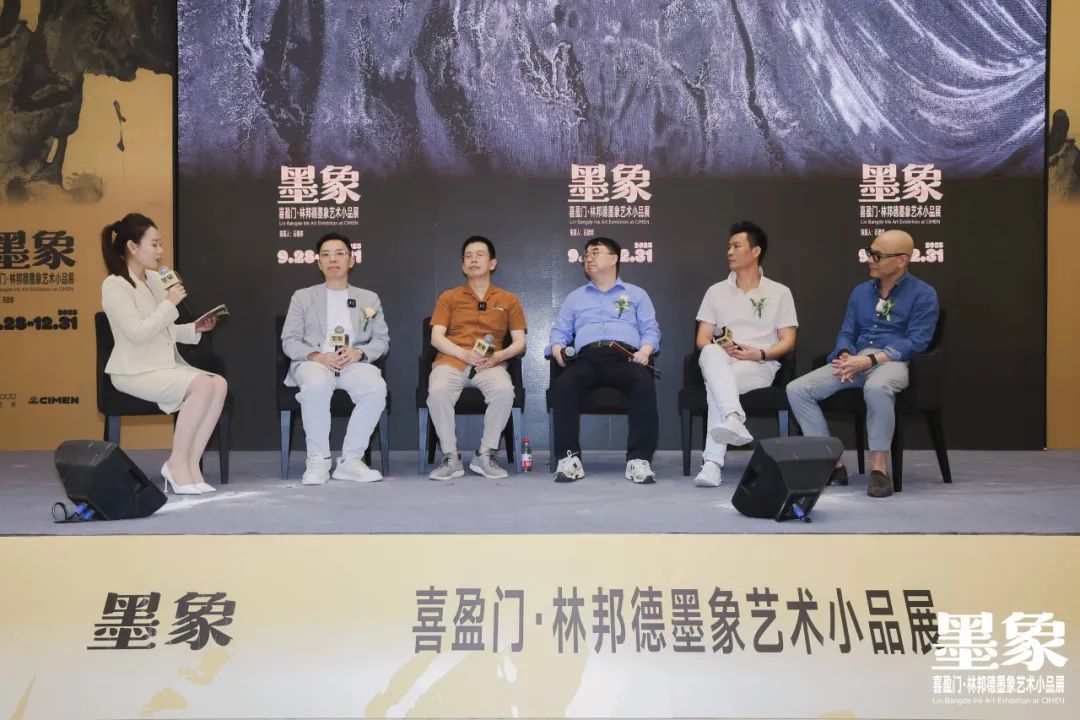 在随后的主题论坛环节,策展人石建邦、海派艺术馆执行馆长张建华、设计师侯胤杰、喜盈门集团执行总裁助理丁奕辰、上海威乃达总经理黄景明等五位嘉宾展开对谈,从商业、策展、设计、文化传承等多维度深入解读了墨象艺术的当代价值与深远意义。