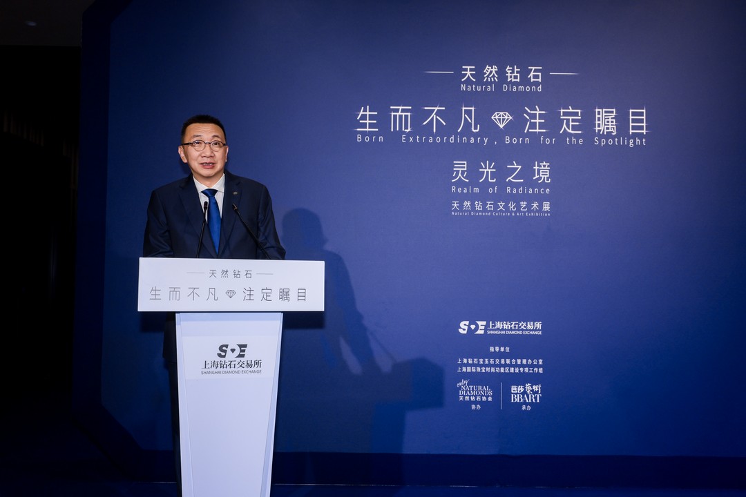 盛典以一场别开生面的“灵光之境·天然钻石文化艺术展”揭开帷幕。在上海市商务委总经济师罗志松先生、上海市黄浦区人民政府副区长沈丹娜女士、上海钻石交易所总裁林强先生及天然钻石协会首席执行官大卫·凯利(DAVID KELLIE)先生的共同揭幕下,一个融汇地质、历史、科技与艺术的沉浸式空间正式向公众敞开。
