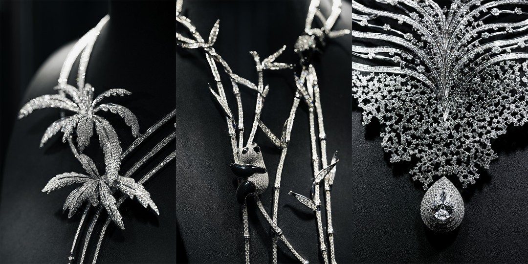金伯利钻石高级珠宝:海韵椰风、竹趣、希望之翼(从左到右)