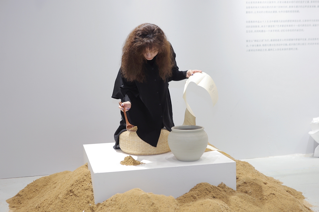 由FREE计划个展艺术家刘恩希、赵轩菲精心准备的两场行为艺术展演,也于开幕日下午在「非空间单元」现场上演:刘恩希《沙的证词》是在场性极强的宣言式行为展演。作品隐入了对无限的思辨,探讨了语言与物质、瞬间与永恒、个体与集体之间的复杂关系。赵轩菲《上岗》将时间换金钱的社会现实浓缩为一个戏剧性的舞台,邀请现场观众置身笼中,亲身体验作品带来的震撼与冲击。