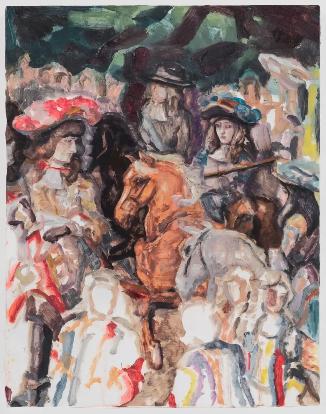 在Thaddaeus Ropac画廊此次展会的销售中,阿尔贝托·布里1953年的《麻布与金》以420万欧元领跑。乔治·巴塞利兹的多件作品也成功售出,其中2024年新作《牛仔》以350万欧元成交,伊丽莎白·佩顿的《路易十四的隆重入城式 1667年》以130万美元另寻买家。