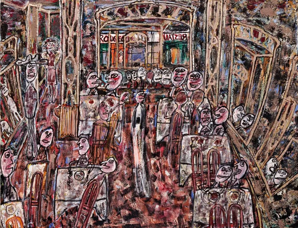 让·杜布菲的《Rougeot餐厅 II》源自其广受欢迎的“巴黎马戏团”系列,值得一提的是,描绘蒙帕纳斯大道上这家传奇餐厅的画作仅存三幅,其中《Rougeot餐厅 I》由艺术家自藏终生,后进入藏巴黎杜布菲基金会。同系列作品曾创下2500万美元成交纪录。