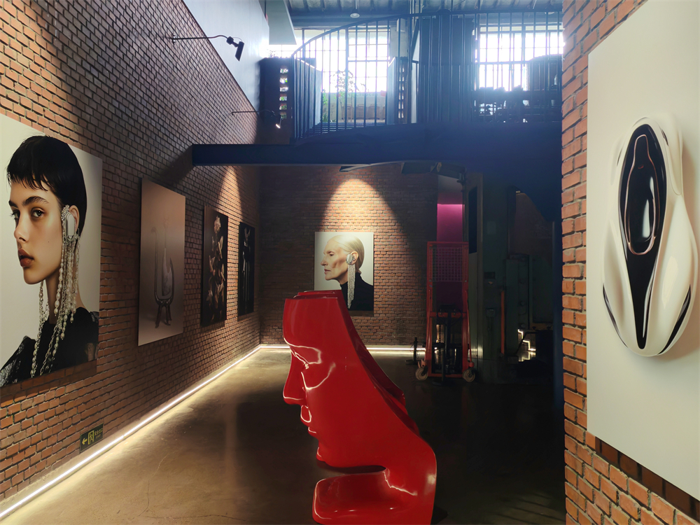 展览以“叙事性观展流线”为核心,通过空间节奏的变化,将60件喷绘与数码输出作品依次排布。从引入、对话、高潮到回味的完整叙事中,引导观众循序渐进地理解“设计转译”的深层内涵。无论是基于算法生成的概念图像所表达的“AI的转译”,还是侧重由AI产出进行的再创作与批判性思考的“设计的回应”,这些具有视觉冲击力和观念深度的系列作品,形成了视觉与思想的对话,充满着对未来设计的时代思考。