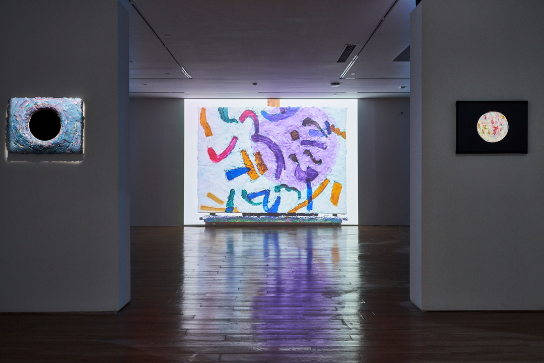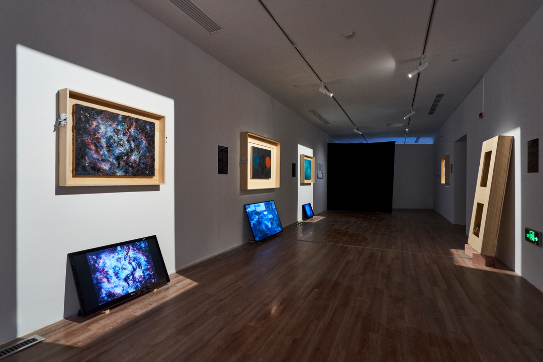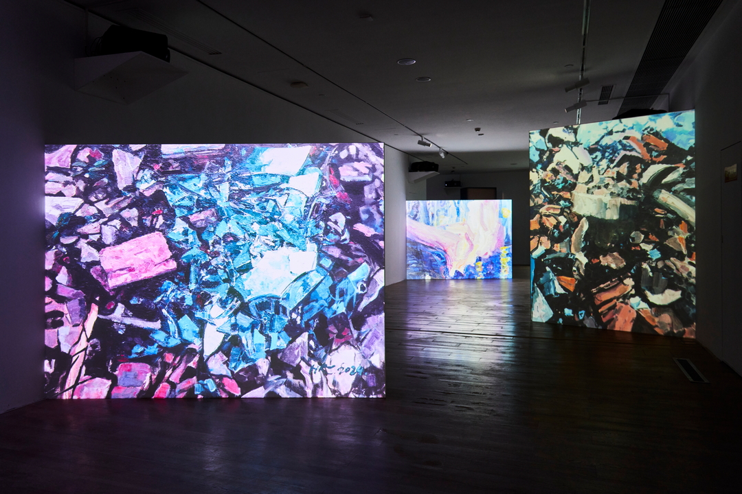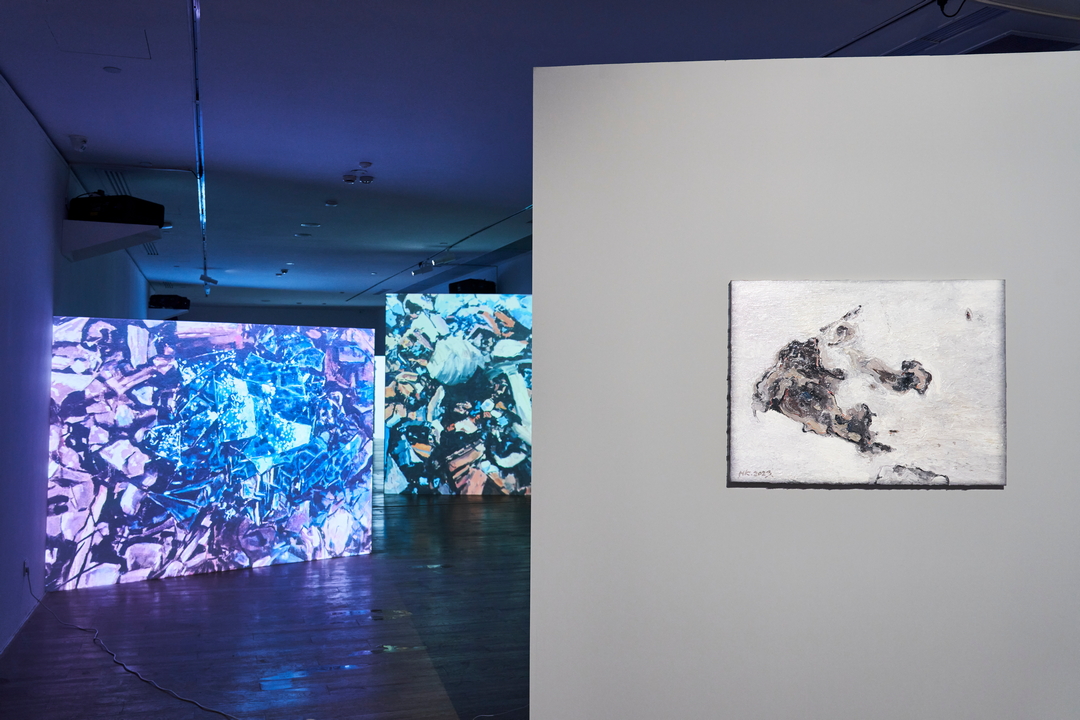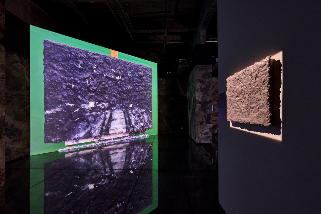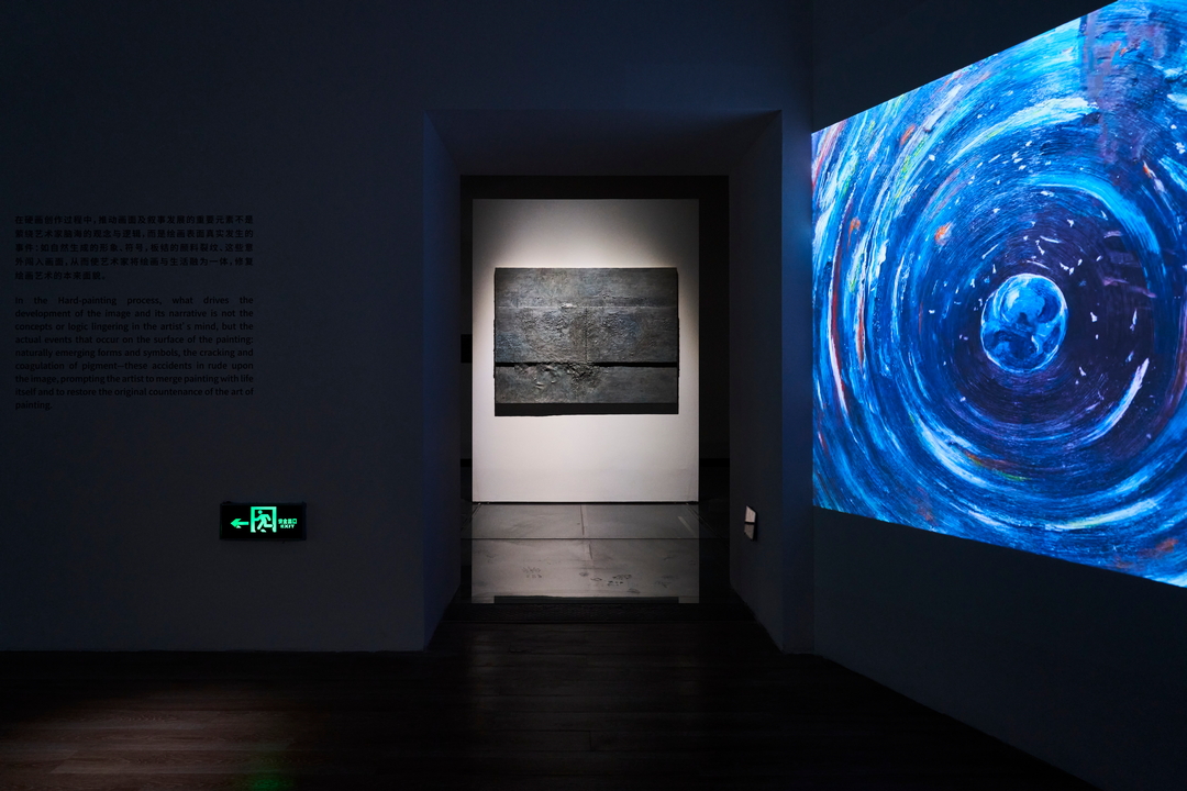 展览将以回廊、后台、洞穴及文献四个展区,逐次揭秘黄奎的“硬画”实践及其聚焦的文化议题。在核心展区“洞穴”,观众将围绕一块巨型银幕观看艺术家黄奎三年间创制的绘画—影像,周遭遍及以千倍放大的绘画笔触图像所营造的负相洞穴景观,即黄奎发现其作品细节同史前绘画实践有着千丝万缕的对话关系:人所关切之物无它,唯自我与统摄之寰宇。回廊部分则依次呈现黄奎思索个体生命因应技术加速时代所需的知觉范式转化经验——我们如何利用无可回避的失神状态在无目光的视觉与无根的文化激荡中定位自身,并做出回应。