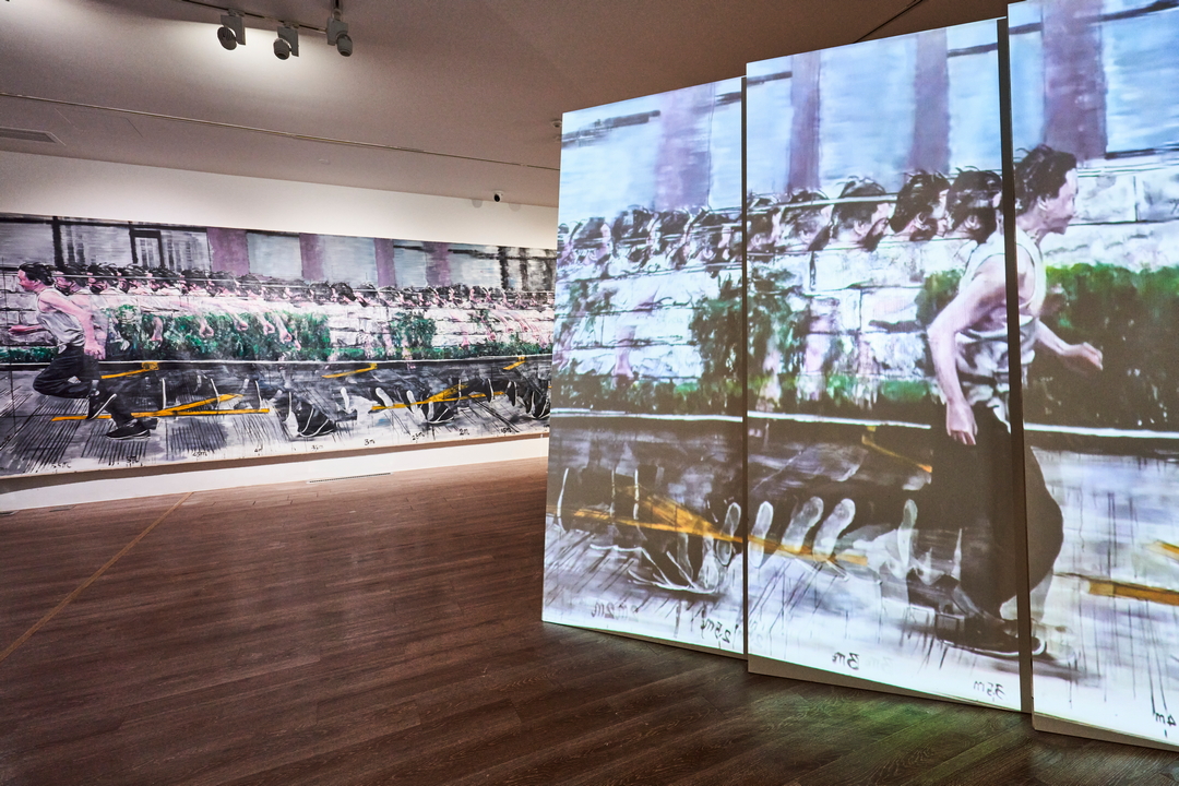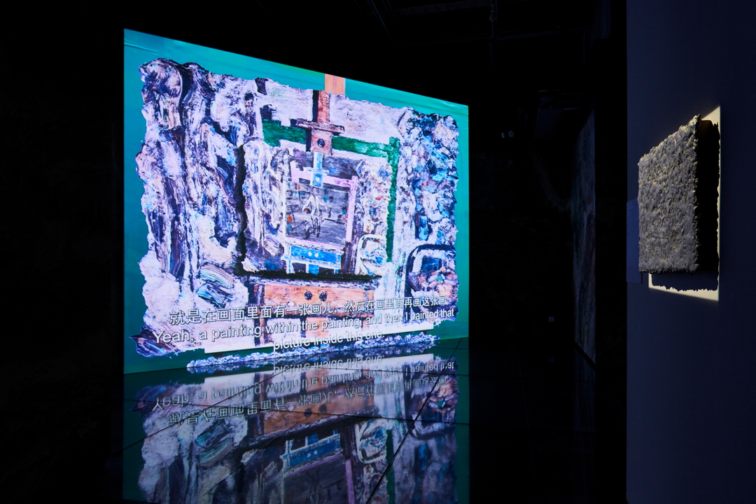事实上,“硬画”技术的发展来自黄奎于本世纪初就已开展的艺术实验,除却本次展览呈现的《意外的67次自画像》(2008年)外,在其入选第52届威尼斯双年展独立策划项目的行为作品《Does GOD Exist?》及早期创作的系列装置作品《光荣故事》中亦有体现。一如最早的科幻小说家之一提菲涅·德拉罗什(Tiphaigne de la Roche, 1722—1774)在作品《吉方蒂》(Giphantie,1760年)中预言“绘画在连续运动中更能揭示真相,”黄奎再次突破其早年创作的空间局限,以更沉浸的作品效果向我们揭示绘画作为一门与火同岁的古老技艺在人工智能滥用的时代仍有其不可取代的,乃至亟需再次实验的文化力量。