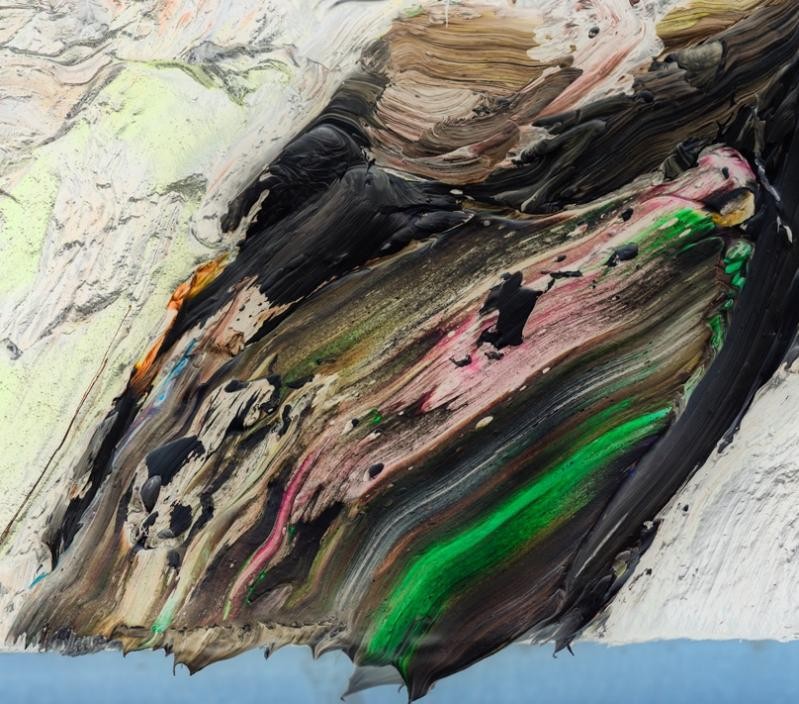 黄奎于2022年开启的“硬画”系列以反复重绘一张画布并制成连续影像的密集型劳作——平均经百次重绘,至多者达千次——不断引入其在同一主题下丰厚的艺术史、影像史与个人视觉经验,耦合多重视觉闪念,进而跨入绘画的质料—时空,拼尽全力修复绘画—物在技术加速时代作为“艺术品的潜在一体性”[1]。历经3年总计约绘制了万余张静帧画面,黄奎以惊人的速度与工作量具身体悟了曾惊诧75后一代中国艺术家的当代绘画语言,如擦除、泼溅、手势性涂抹、刮画的技术价值及在创作实践中的具体表现语义,并与同批中国艺术家一样不满于静态绘画的片面性及/或必然导向的典型性,黄奎选择以修复专家的视角不懈修改画面,直面本世纪初叶所呈现的驳杂时代语境与为平台化技术集团所肢解的个人身份困境。作品述及潜在的国际争端、唯技术论引发的道德危机,以及个人生命经验与宏观历史、现实,乃至宇宙运行规律的运作关系。