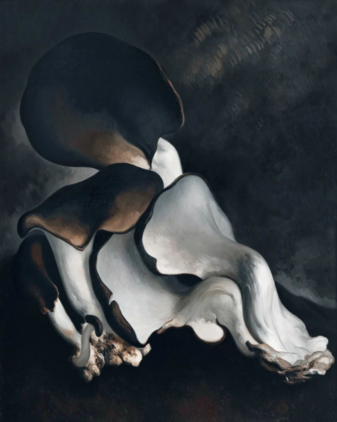 “蘑菇”系列是闫冰在拍场屡创佳绩的一个系列,过去几年一次次点亮市场价值的刻度。作为该系列中尺幅最大的作品之一,《蘑菇 NO.16》早在2019年“蘑菇”系列首次展出时,便作为展览海报出场。艺术家使用古典油画的方式,一丛蘑菇被刻画得沉重又轻盈,散发出一种强烈的肖像意味。