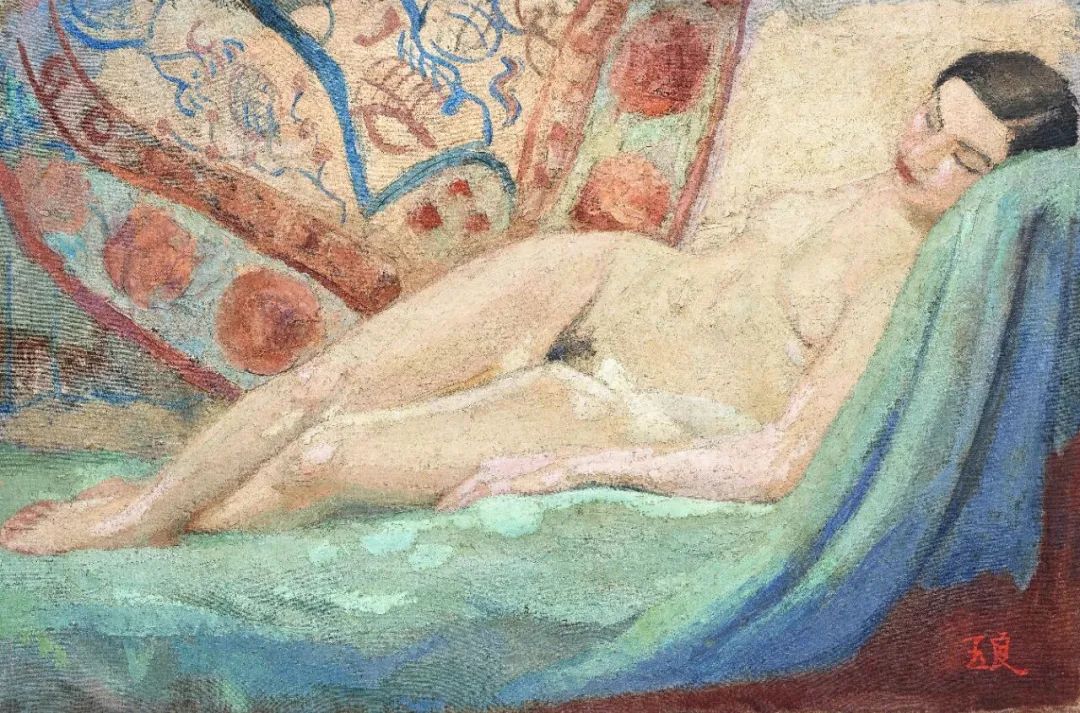 潘玉良《绮罗玉眠约》以西方油画的骨架,承载了东方审美的灵魂。画中斜倚的女子,躯体流淌着东方式的温婉,勃发着生命本身的力量与女性的自我颂歌。作为艺术家最具代表性的“东方裸女”题材,属罕见的博物馆级珍藏。该作源自亚洲重要藏家1992年于法国的珍藏,并于当年亮相高雄琢璞艺术中心“潘玉良个展”,其权威性亦获安徽博物院权威刊物《安徽文博》的收录与肯定。