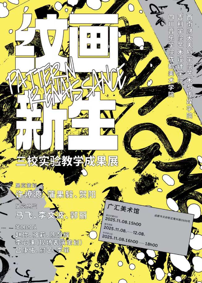 近日,由吉利学院艺术设计学院发起,联合西南财经大学天府学院艺术与传媒学院、四川音乐学院成都美术学院公共艺术系共同推出的实验教学成果展——“纹画新生”在成都广汇美术馆正式拉开帷幕。此次展览是三方院校响应国家“文化引流”号召与教育部“校地协同、校社协同、校企协同”方针的重要实践,也标志着高校美育课堂向城市公共文化空间的深度拓展。