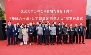 2025年11月29日上午,武汉大学万林艺术博物馆开馆十周年特展“跨越六十年:人工智能的创意之火”隆重开幕。
