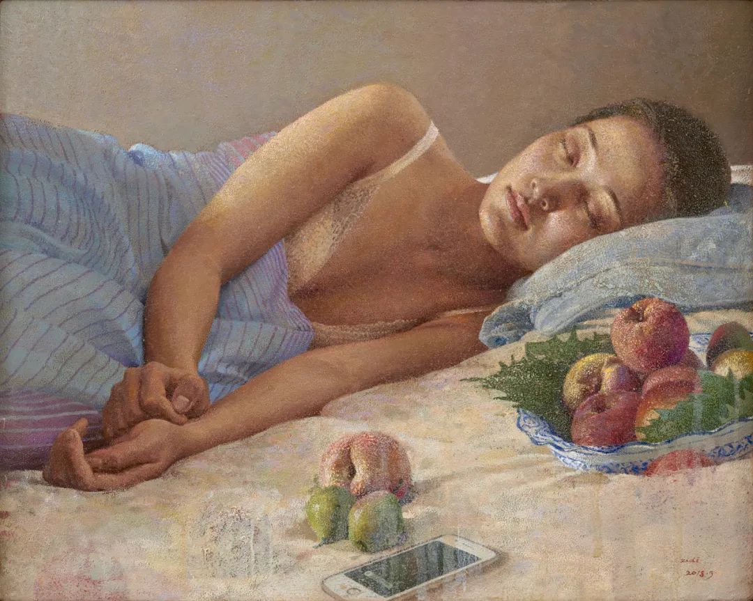 现代科技的高速发展让一切“瞬时可见”,甚至“触手可及”。全新的科技逻辑重塑着现代人的视觉经验和潜意识,肉身的局限性在缩小。我们习惯在各类屏幕上浏览海量画面、视频和资讯,却越来越少地以一种平静的姿态去感受自然中的微妙光线、家庭日常里的温柔瞬间和人间烟火中的琐琐碎碎。身边的真实世界,让我们更清晰地看见徐紫迪对古典绘画的坚守,也正是因此,我们开始回望“看见”的暖意。