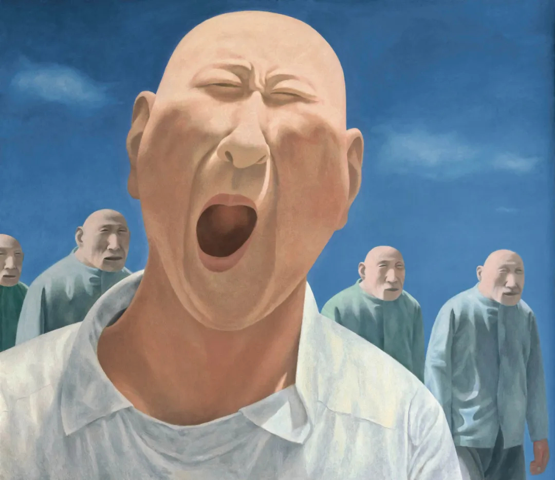 又一次走进方力钧的艺术世界,我们依然要聚焦那些表情各异、形式多样的“光头”。在我看来,方力钧塑造的“光头”形象就是一个时代的文化缩影,是芸芸众生在经历了大变局的历史洪流冲刷之后所幸存下来的——克服了文明的伪装,藏匿在习以为常身份面具背后的真实精神样貌。值得深入思考的是,这些形象,三十多年前曾以一种前所未有的戏谑与暧昧的文化表达方式登上艺术的历史舞台,瞬间触击到大变革时代人们社会心理深处的敏感神经——他们打哈欠、傻笑或面无表情地凝视远方,以一种格格不入的幽默,见证了一代人在解放思想、社会转型、价值重构中的执着、迷惘和自嘲的精神自我。不得不承认,这是一份关于社会转型期表现中国人社会心态转变的关键性视觉“证据”。