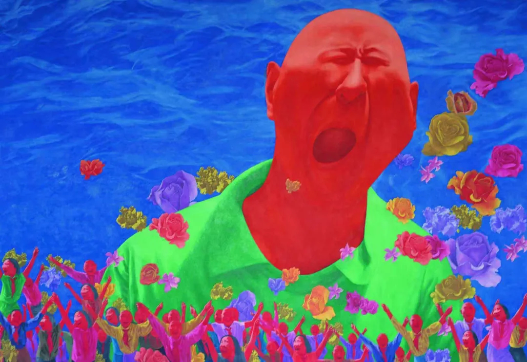 ▲ 方力钧,布面丙烯,250×360cm,1998年