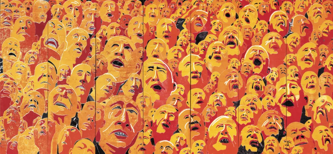 ▲ 方力钧,木刻版画,400×852cm,2003年