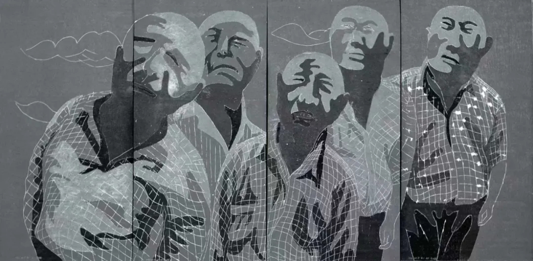 ▲ 方力钧,木刻版画,244×488cm,1996年