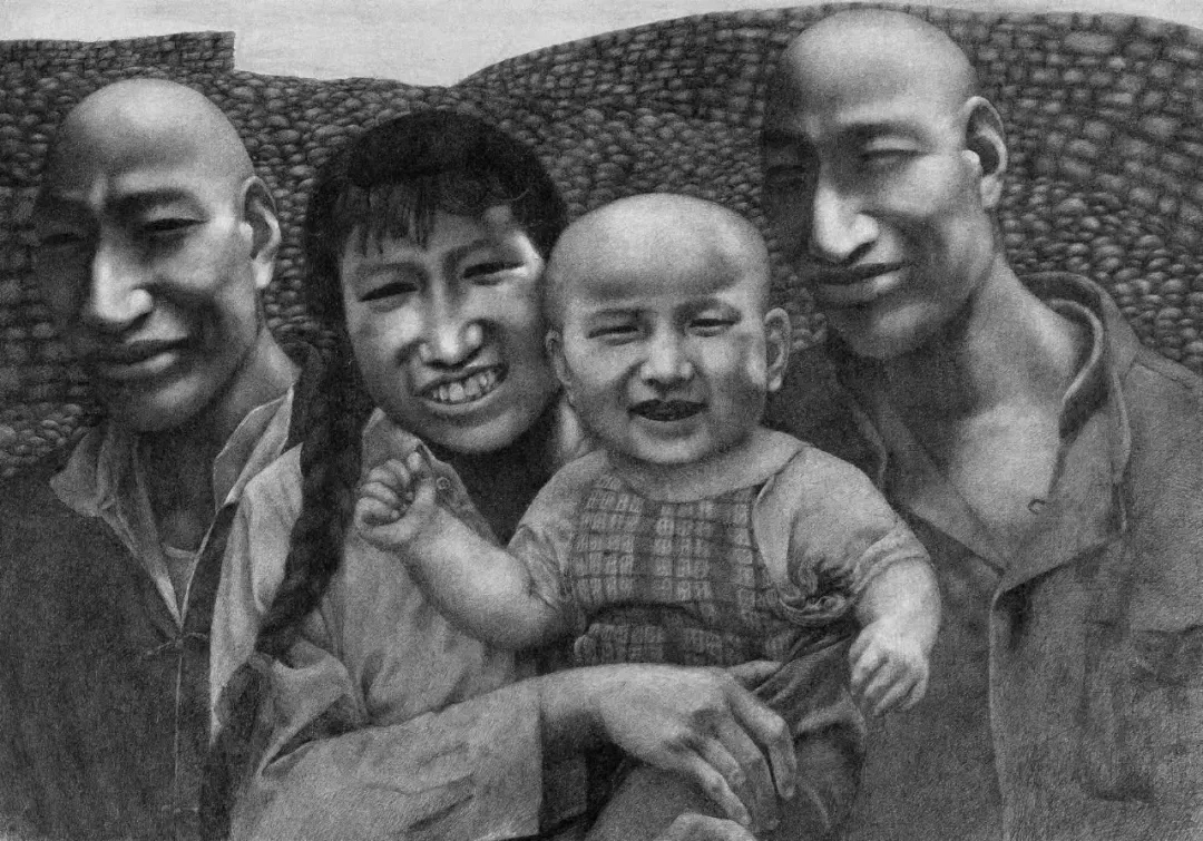 ▲ 方力钧,素描(之二),纸上铅笔,54.8×79cm,1988年