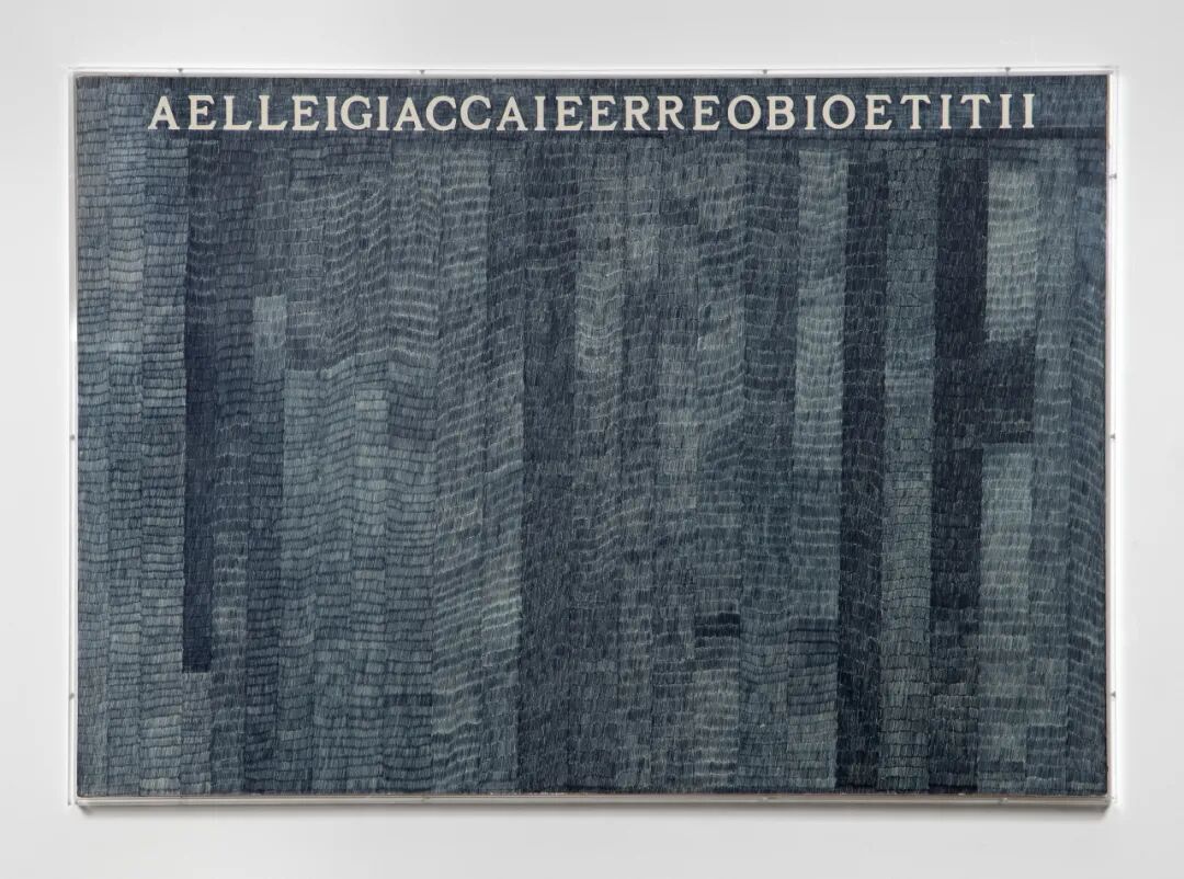 在本次展览的作品中,创作于 1973 年的作品《名与无名》是规模最大、构思最宏大的圆珠笔系列作品之一。整件作品由十一块画板组成,全球仅存五件同等尺寸的版本,其中一件现藏于日本丰田市美术馆。作品标题象征着一种分散式创作的自画像——正如评论家米雷拉·索泽奥(Mirella Sauzeau)所称,它是一场「分裂自我的多重盛宴」。数字 11 也是波艾提最钟爱的数字——它将1加倍,象征着他那阿里基罗与波艾提(Alighiero e Boetti)式的双重身份。