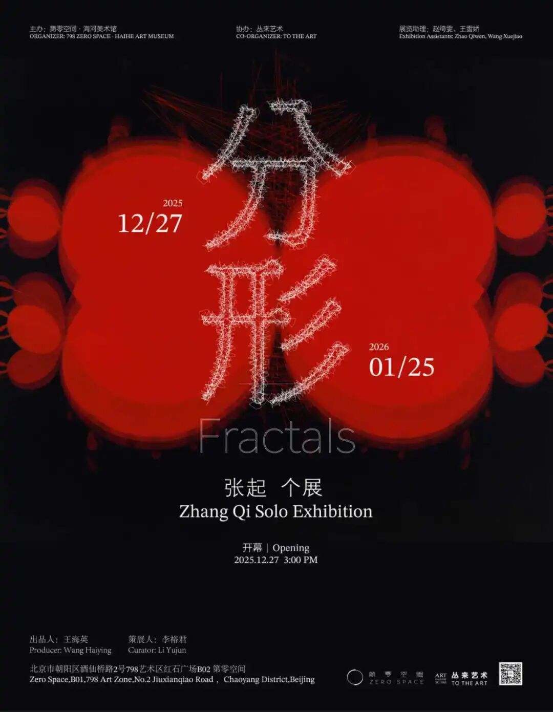 第零空间荣幸宣布,将呈现新锐艺术家张起的首次个人展览“分形”。本次展览由独立策展人李裕君策划,第零空间与海河美术馆联合主办,丛来艺术TO THE ART协办,展期为2025年12月27日至2026年1月25日。展览将集中呈现张起近三年创作的三十余幅抽象绘画作品,诚邀各界人士莅临。