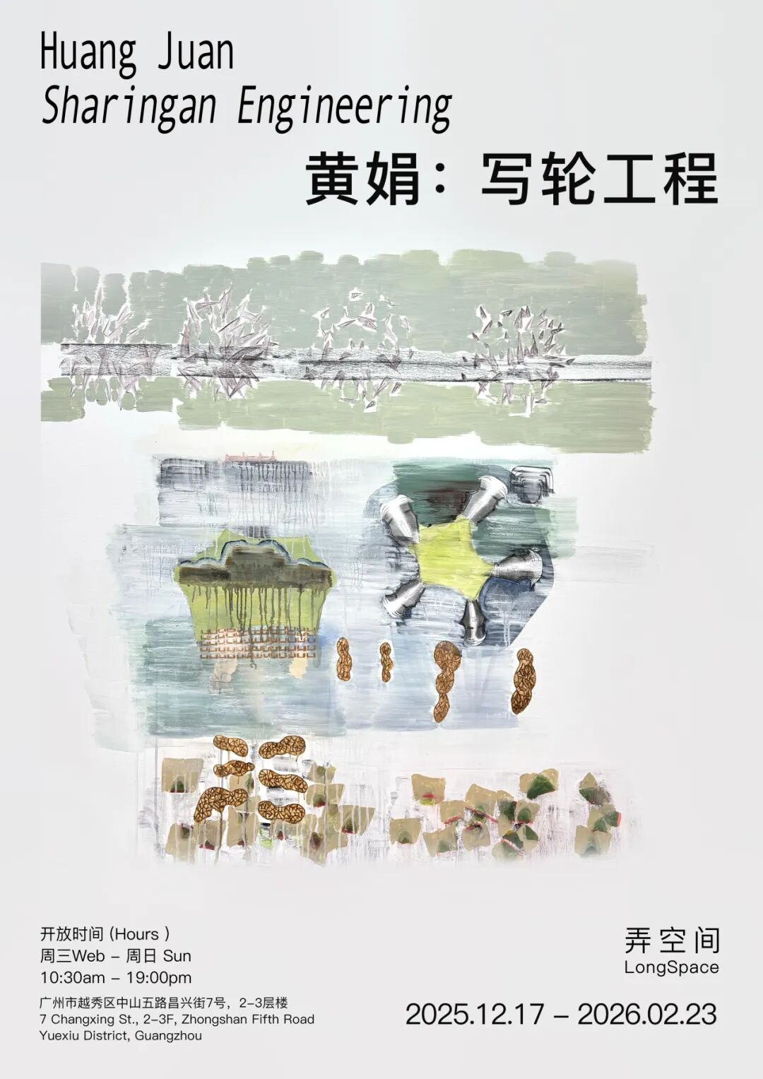 弄空间欣然宣布黄娟个展《写轮工程》将于2025年12月17日开幕。本次展览的标题取自她两幅作品题目的并合,“写轮”指 “复制”、“洞察”、“分析”和“进化”的能力,“工程”泛指艺术家在作品中的总体企划。这次展出的作品包括布面和纸本绘画共计30件,集中展示了艺术家近三年的最新创作。
