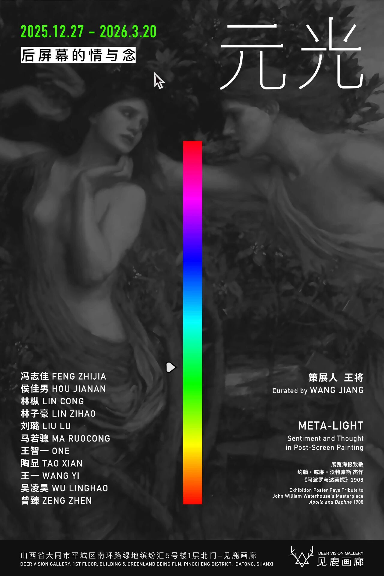 见鹿画廊欣然宣布,将于2025年12月27日至2026年3月20日期间呈现十一位艺术家参与的群展“元光:后屏幕的情与念”,展览由独立策展人王将策划。