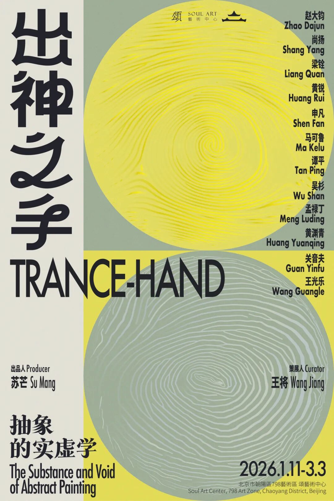 頌艺术中心荣幸地宣布,将于2026年1月11日推出頌艺术中心首个重磅抽象绘画大展“出神之手:抽象的实虚学”,展览汇集了赵大钧、尚扬、梁铨、黄锐、申凡、马可鲁、谭平、吴杉、孟禄丁、黄渊青、关音夫、王光乐等十二位极具代表性的中国抽象艺术家的经典力作。他们出生于上世纪三十至七十年代。这一跨度不仅深度关联中国当代抽象绘画从发轫、探索到多元深化的演进轨迹,更映照出不同代际艺术家在面对时代变迁和文化对话时所展开的各有侧重的精神实践。本次展览由頌艺术中心馆长苏芒女士担任出品人,特邀独立策展人王将担纲策划,展期将持续至3月3日。