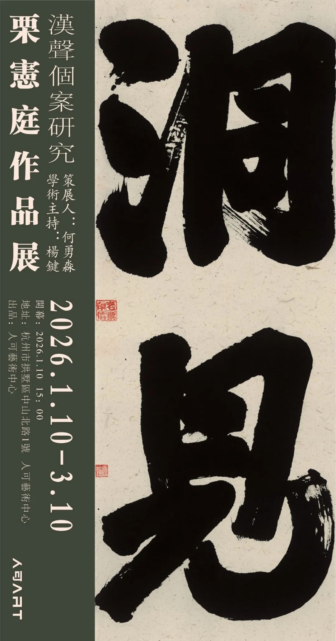 2026年1月10日至3月10日,人可艺术中心将举办“汉声个案研究——栗宪庭作品展”。作为“汉声个案研究”系列的重要呈现,本次展览由人可艺术中心创始人何勇淼担纲策展,诗人、艺术家杨键担任学术主持,集中展出栗宪庭近年来的代表性书写作品。