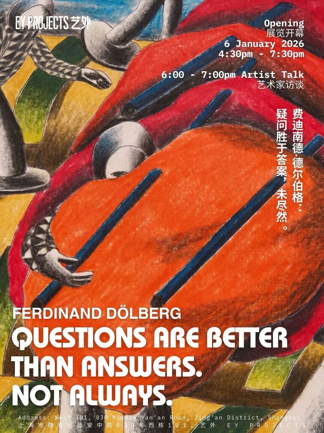 2026 年 1 月 6 日,EY PROJECTS 正式推出费迪南德・德尔伯格(1998—,德国爱森纳赫)的中国首次个人展览 ——「Questions are better than answers. Not always.」(疑问胜于答案?未尽然)。本次展览聚焦艺术家近年创作的中小型系列作品,以 “语言作为权力载体、规训工具与认知滤镜” 为核心命题,深入探讨我们如何通过被赋予的 “词汇” 解读现实、理解劳动、定义自我。而展览标题本身便是一次对认知惯性的叩问:当我们默认 “疑问比答案更有价值” 时,是否又陷入了另一种思维桎梏?