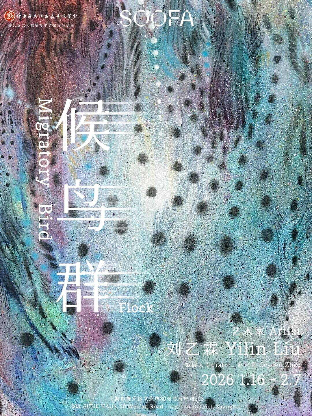 SOOFA SUHE 荣幸呈现青年艺术家刘乙霖的个展《候鸟群》。展览呈现了艺术家近两年来围绕抽象绘画所展开的一系列实践。刘乙霖将注意力转向那些处于失焦、噪动与未完成状态的图像经验,以此作为对当下视觉环境的某种回应。