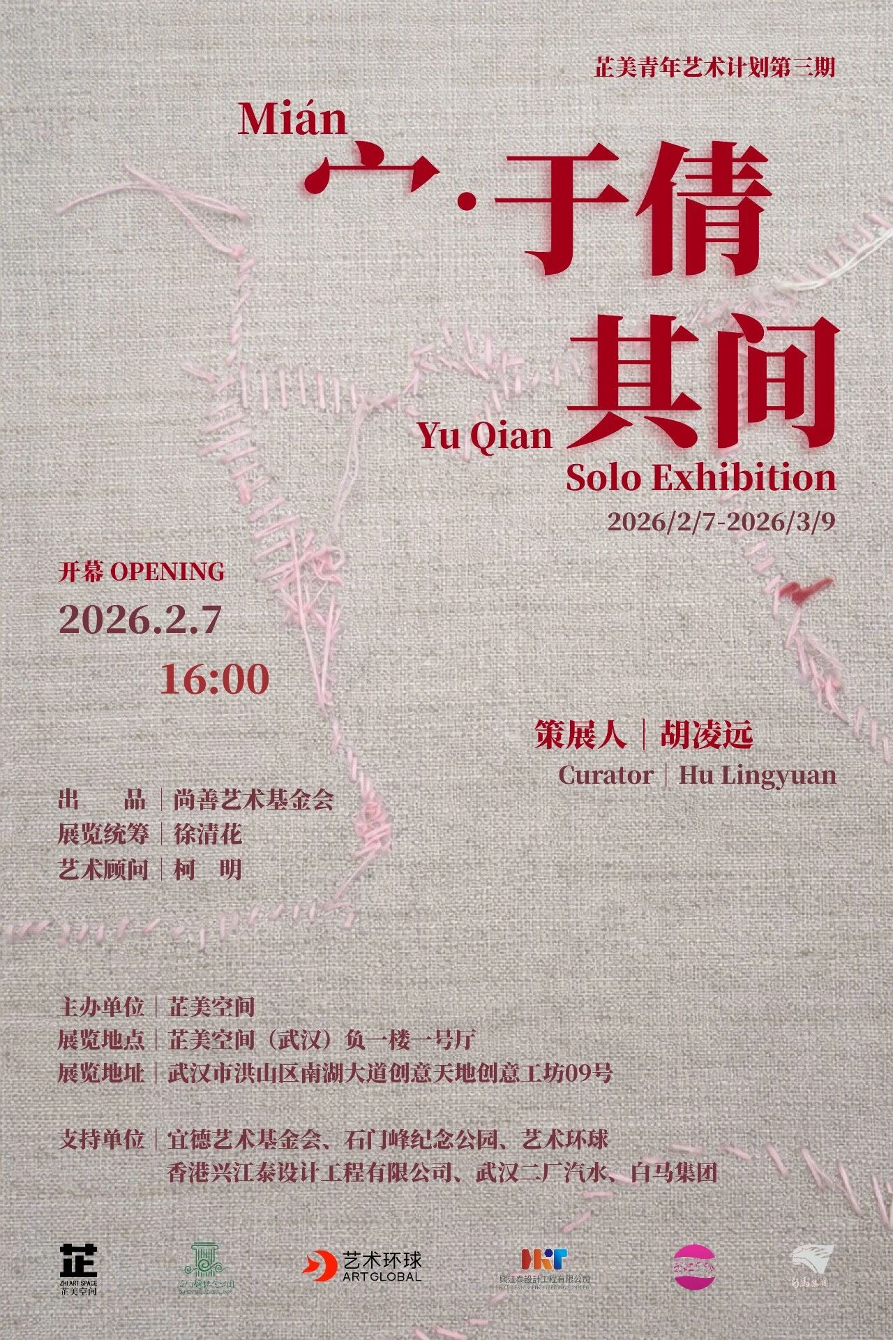 芷美空间|武汉将于2月7日新春之际推出2026年首场展览——芷美青年艺术计划第三期「宀·于倩其间」。本次展览将呈现青年艺术家于倩以绘画和纤维装置为媒介创作的数十件新近作品。