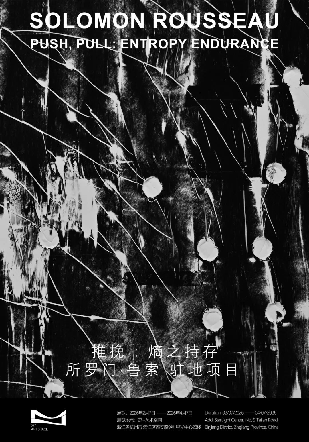 值此新年来临之际,所罗门·鲁索正参与位于中国杭州的27+艺术空间驻留项目。并将于2月7日在27+艺术空间呈现一场全新的展览「推挽:熵之持存 Push Pull: Entropy Endurance」。