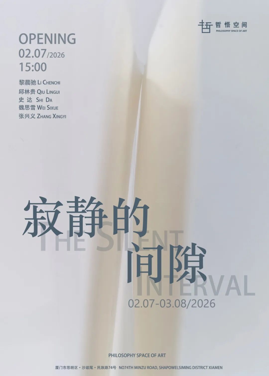 哲悟空间很高兴为您呈现《寂静的间隙》群展,汇集了黎晨驰、邱林贵、史达、魏思雪、张兴义五位艺术家。以“静”与“间”为线索,透过材质、光影、痕迹与形态的多重语言,呈现艺术在时间与空间中的对话。展览将于2月7日至3月8日在厦门思明区沙坡尾民族路74 号哲悟空间展。
