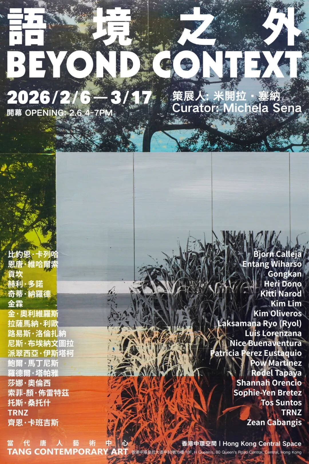 当代唐人艺术中心荣幸宣布,将于2026年2月6日至3月17日,在香港中环空间呈现大型东南亚艺术家群展“语境之外”。展览由米开拉·塞纳(Michela Sena)策划,参展艺术家包括比约恩·卡列哈(Bjorn Calleja)、恩唐·维哈尔索(Entang Wiharso)、贡坎(Gongkan)、赫利·多诺(Heri Dono)、奇蒂·纳罗德(Kitti Narod)、金霖(Kim Lim)、金·奥利维罗斯(Kim Oliveros)、拉萨马纳·利欧(Laksamana Ryo)、路易斯·洛伦扎纳(Luis Lorenzana)、尼斯·布埃纳文图拉(Nice Buenaventura)、派翠西亚·伊斯塔柯(Patricia Perez Eustaquio)、鲍尔·马丁尼斯(Pow Martinez)、罗德尔·塔帕雅(Rodel Tapaya)、莎娜·奥伦西(Shannah Orencio)、索菲-颜·布雷特兹(Sophie-Yen Bretez)、托斯·桑托什(Tos Suntos)、TRNZ、齐恩·卡班吉斯(Zean Cabangis)。