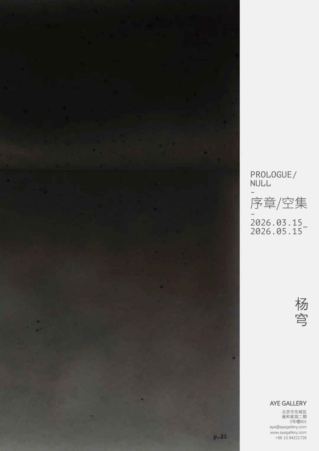 AYE画廊将于2026年3月15日至2026年5月15日举办艺术家杨穹的个展《序章 / 空集》。