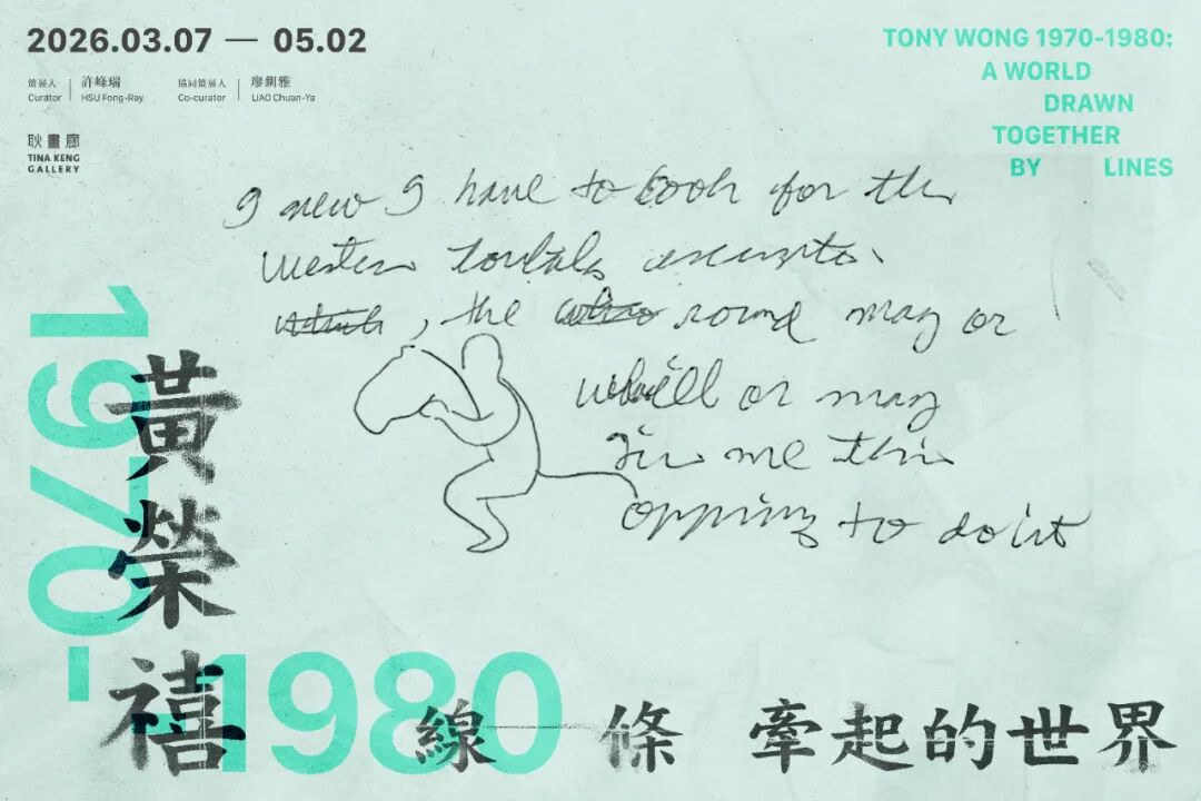 本展以「线条牵起的世界」为子题,试图从时代和身体移动为座标,去理解世界不仅是具体的地景,更像是一片又一片等待被理解的海洋。展览规划中,将以其速写手稿的线条作为概念核心延伸至展览空间,拼贴作品和幻灯片纪录则为时代补充了更丰富的创作背景。展览延伸出黄荣禧70至80年代的创作形貌,这是黄荣禧绘中画线条的「起点」,从此点出发,观者得以发现,黄荣禧不是用绘画纪录时代,而是以线条记录迁移的生命如何去经验世界。其绘画所划下的每一道线条,就如同呼吸中的吞吐,记录着身体如何在世界中找到自己的方向。黄荣禧创作中的世界从未先于笔下的线条存在,而世界,则是被线条所牵起的另一端。