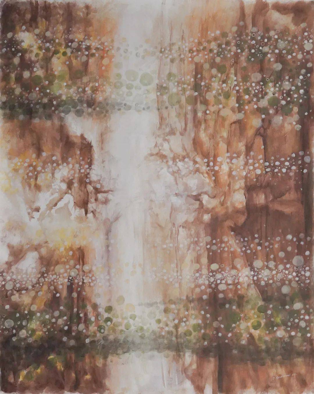 他赋予了绘画一种感官本能——启迪性和梦幻般。即使这些丰富的内容有时会被反映在一个无限小的、甚至是微观的世界。在这种本能的好奇心驱使下,一系列作品诞生了。其中,多色性和亮度成为他绘画创作方法中的重要组成部分,参观者可以沉浸在这个世界中,由光学和情感效果所带来的效果,如同莫奈会说他知道如何“睁着眼睛作画”一样,作品旨在表现神秘、无限和能量。