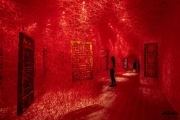 Q:《回响·无限》在与大众的互动中最终完成,让我们联想到藏传佛教中坛城的沙画绘制过程,对于沙画的破坏也最终完成了仪式。而您某些作品中的形象,让人联想到宗教内涵。您自己是否有宗教信仰?如何看待作品中透露出的宗教感?