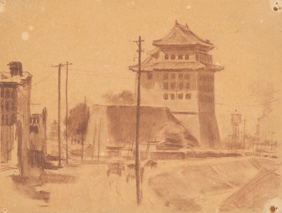 李斛 老城门 纸本素描 23cm×30.5cm 1950 年代 李斛家属藏