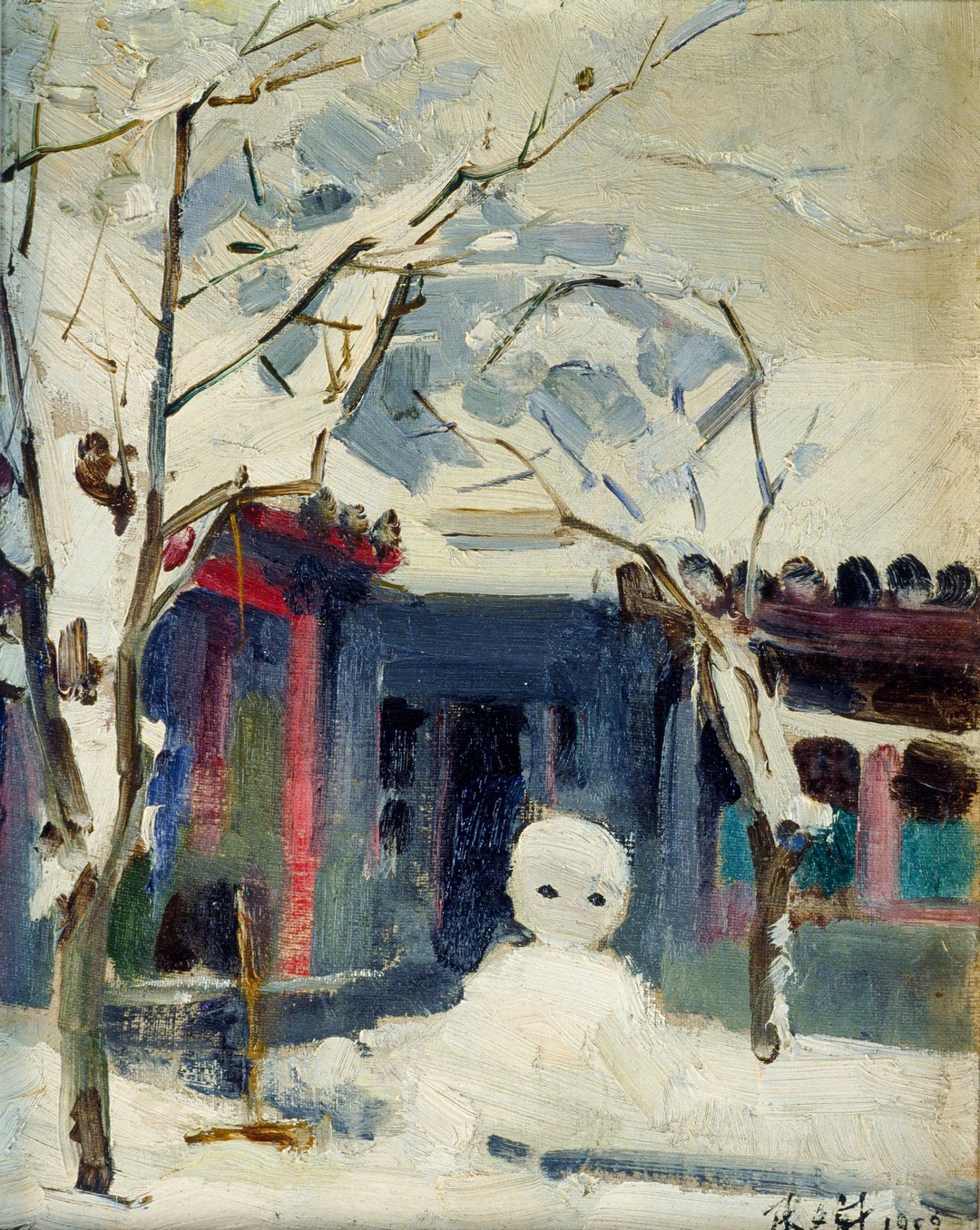 张文新 北京四合院的雪人 29.8×23.5cm 布面油画 1959年