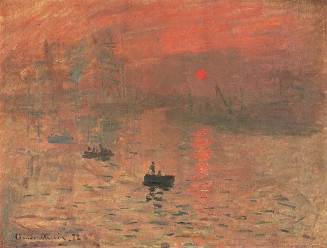 正是由于图式具有这种奇特的中介作用,西方近代的具象绘画才能达到感性形象与抽象理念之间的统一。然而到了19世纪70年代,当印象派绘画兴起之后,这种传统的绘画风格受到了根本的动摇。如果我们把莫奈的成名作《日出·印象》与近代绘画相比较,不难发现这幅作品既没有准确地再现任何对象,也没有传达出任何抽象观念。