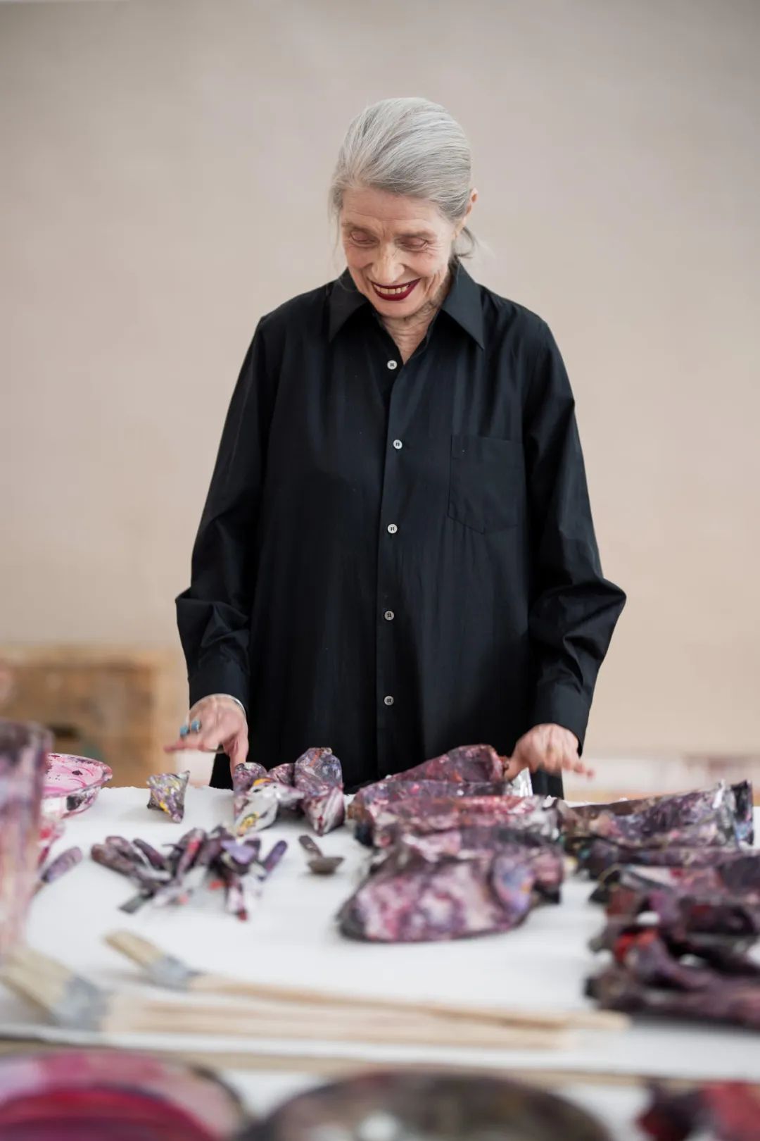 玛莎·琼沃斯1940年出生于奥地利维也纳,如今已是85岁高龄,满头银发,但精神矍铄,关注新闻时事,对艺术充满激情,对逛博物馆抱有巨大的热忱,一天甚至能逛10个博物馆。她在艺术史汲取灵感,以新闻事件为原型,进行创作,抒发浓烈的情感。