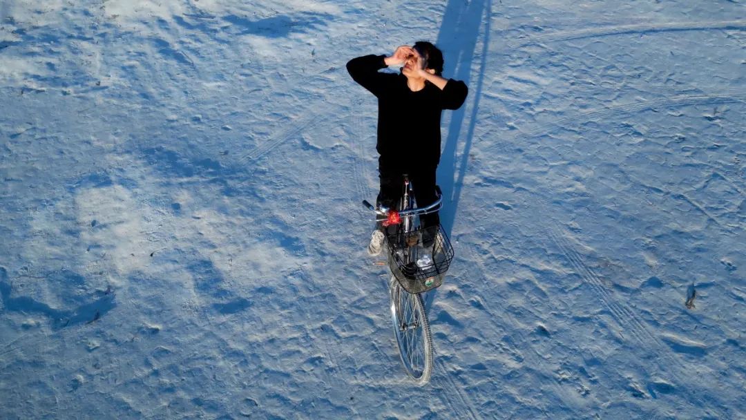 Raqs Media Collective,《The Bicyclist Who Fell Into a Time-Cone》,2023年,单通道影像,25分05秒。图片致谢艺术家及The Jencks Foundation at The Cosmic House