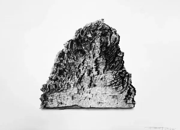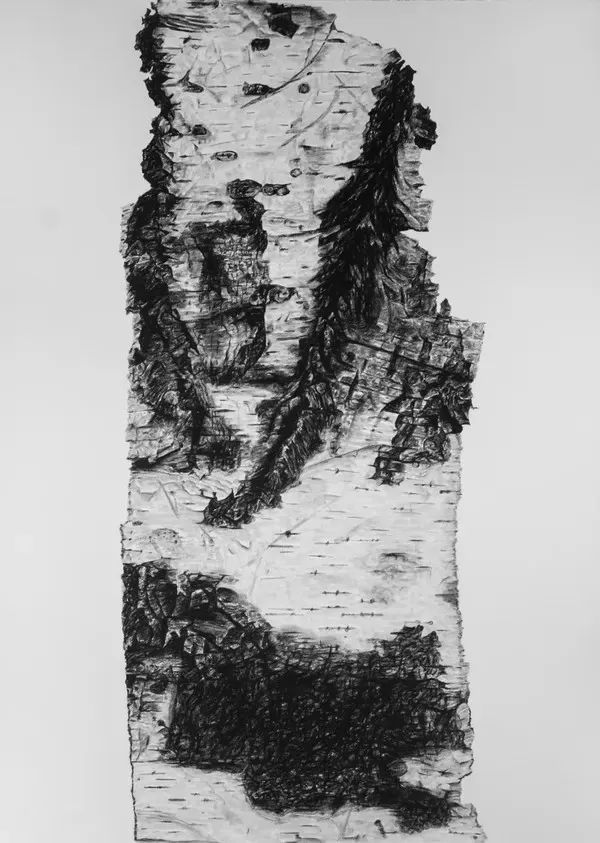 刘政昕在这次展览中展出了不同创作时期的几个系列作品,应该说能够反映他较近时期创作动向和思想线索。较早一点时间的几件油画作品和一部分纸本作品以微观视角和具象呈现的方式表达了犹如中国传统水墨般的白桦树皮,这些作品是刘政昕持续较长时间的创作主体。一方面是他对北方故乡作为精神家园的致敬;另一方面也是他对传统中国绘画的视觉图示的探索。而白桦树皮作为视觉承载体纯属于刘政昕个人的发现,对于出生于长白山区林业局的他来说,这无疑不是难事,至于能不能从白桦树皮上看到中国传统山水则完全是后天的学养和观察力的原因。这批作品较明确的反映出刘政昕对北方的精神依恋,以及游子在惆怅的情愫中叙事家乡的集中表现,而北方也的确给予他十分丰富的创作滋养。