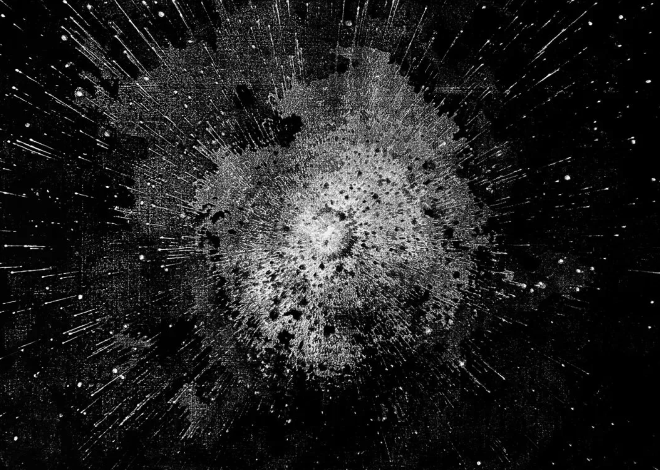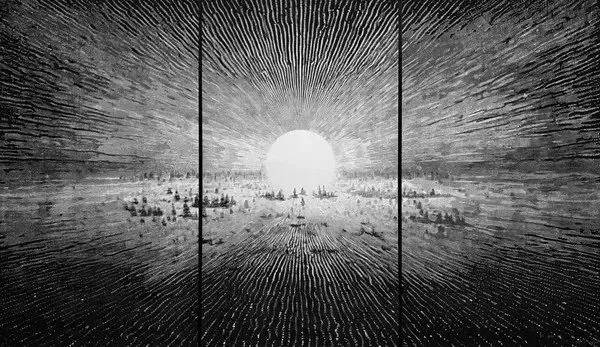 《尘埃》《临界点》系列是两组对称式的系列作品,《尘埃》以一种更为宏观的宇宙视像作为表达对象,而《临界点》则是以更加微观的视像结构为锚点,这两组作品是作者对宇宙宏观和细小微观的哲学性思辨,我想这既是他面对浩瀚苍穹茫然不知所措时的顿悟,也是他面对微观尘埃凝神思索偶得结论的通达。